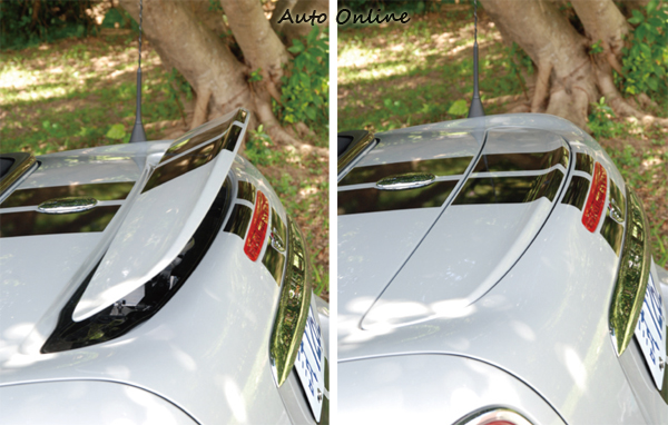 帥氣的代價不斐![]() ▲MINI Roadster只提供Cooper S單一車型,引擎蓋仍有專屬造型進氣口。原廠原本為Roadster準備了汽、柴油多種版本,不過國內只引進Cooper S一種車型,所以在厚實的引擎蓋上也看得到Cooper S特有的進氣口,但依然只是裝飾用途。 ![]() ▲隱藏式活動尾翼也是Roadster的外觀特色,時速80公里以上就會自動升起,平時也能選擇收起來。![]() ▲椅後的防滾桿裝置已經成了所有敞篷車的必要裝備,在這部車上還另外安裝了迴風網。![]() ▲不像硬頂敞篷車那樣,Roadster的軟篷沒有佔用太多的行李空間,因此生活機能還算合格。![]() ▲敞篷開啟前必須以手動方式解除鎖扣,再來就全交給電動馬達處理了。