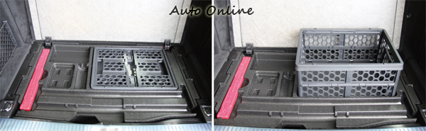 ![]() ▲行李空間是旅行車最驕傲的地方,而它的遮簾固定方式與眾不同,是在椅背上面的。除了寬敞富變化的車內空間,尾廂的行李載運能力當然更是這款車的最大賣點,標準狀態下就有456公升的容量,配合可傾倒後座椅,最多能擴充至1500公升的超大容量,而且底板平整,還附贈安全網,絕對是喜愛戶外生活玩家的好夥伴。 ![]() ▲能快速組合的置物籃,便於臨時需要時使用,平時又不會佔用空間。![]() ▲雙前座下方都設置了隱藏置物處,可以用來放置摺傘等小物。
