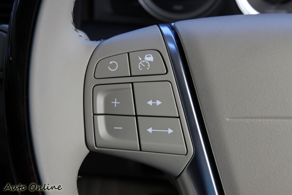 ▲方向盤左邊的控制按鍵可以控制與前車間距的警示系統。