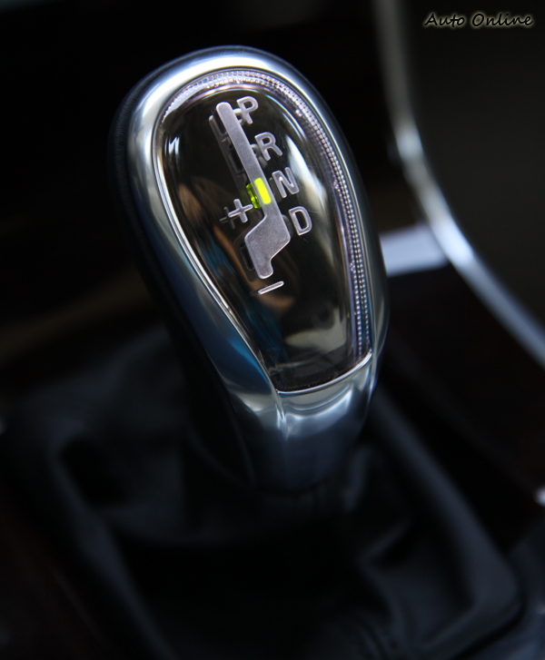 內裝上,XC60 D4維持原樣,最大的差別就是將專為V40所設計的跑車科技感透明排檔頭沿用在XC60 D4上,透明外殼排檔桿微微散發著藍光,中間的檔位顯示用明顯的綠色,有極佳的操作手感。