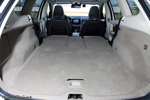 ▲後座椅背放倒之後,完全平整化的後車廂置物空間,容積從490L躍昇到1,450L。
