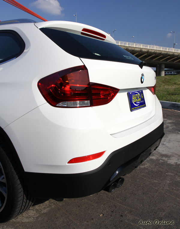 兩種風格任意穿搭![]() ▲Sport Line車型車頭為黑色高光澤水箱護罩,下方還是採用平光黑塑料,以防在輕度越野時刮傷烤漆。2012年,全新改款的BMW X1在外觀上變動幅度不大,最主要是導入xLine與Sport Line兩種風格讓消費者選擇。如果消費者選擇xLine風格,外觀會有銀色烤漆水箱護罩、前後保桿銀色烤漆飾條以及銀色烤漆排氣尾飾管。xLine的整體風格偏向都會時尚,大量運用銀色烤漆來裝扮X1的整體風格扮相。而Sport Line看名稱大概就知道風格的走向,沒錯!整體風格走的是運動風,在外觀上裝飾與xLine截然不同。Sport Line外觀在車頭選用黑色高光澤水箱護罩、前後保桿飾條同樣為黑色高光澤顏色,車尾排氣尾飾管當然還是黑色高光澤色系。 ![]() ▲後保桿下方有類似擾流造型設計,尾飾管一樣採用黑色高光澤加以處理。![]() ▲車頂的霧銀材質的車頂架,消費者可以選配橫桿來使用。![]() ▲後尾燈採用BMW近期的家族特色L型LED尾燈設計,提高車系辨識度相對增加後方安全性。![]() ▲側邊同樣為黑色高光澤的飾條包覆側裙,上方有sDrive20i的車型銘牌。![]() ▲X1輪胎與輪拱間的距離拉高,加深運動休旅的氛圍,輪胎尺寸為225/45R18搭配一般道路用胎。