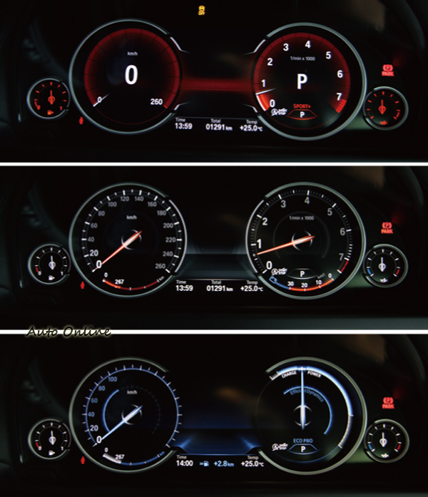 豪華旗艦房車也能很熱血![]() ▲740Li搭載一顆3.0升直列六缸渦輪增壓引擎,最大馬力為320hp/5,800rpm與最大扭力450Nm/1,300rpm,從靜止加速到100km/h只要5.7秒。在動力上,BMW已經不用車型來說明引擎排氣量,740Li搭載一顆3.0升直列六缸渦輪增壓引擎,結合汽門揚程可變系統、正時可變系統及燃油缸內直噴,最大馬力為320hp/5,800rpm與最大扭力450Nm/1,300rpm。在車重的夾擊下,從靜止到100km/h依舊有5.7秒的水準、實力。全新740Li的油耗表現上升27%,二氧化碳排放下降了21%,所有的提升都拜高科技所賜。 ![]() ▲BMW車系從1系列到剽悍的X5都看的到八速手自排變速箱,全新改款的740Li也不例外。![]() ▲導入LED液晶螢幕的儀表板,不同行車模式有不同樣式,從上到下為SPORT模式、COMFORT模式、ECO模式。![]() ▲BMW 740Li除了擁有豪華、舒適的乘坐感,後座買家如果想要熱血一下,BMW 740Li還是可以帶來駕駛樂趣。