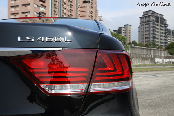 行李廂尾門與後保險桿上有相互輝映的鍍鉻飾條,排氣管為左右兩邊單出設計,大量使用鍍鉻金屬裝飾,在前衛、科技感下還是保有豪華氣度的風貌。在外觀上與BMW 740Li有著不同的扮相與氛圍,兩者很有默契地都導入LED光源科技,看來英雄所見略同,但在LS 460這個等級的車款,頭燈部分並未使用LED,對LEXUS稍稍感到可惜。