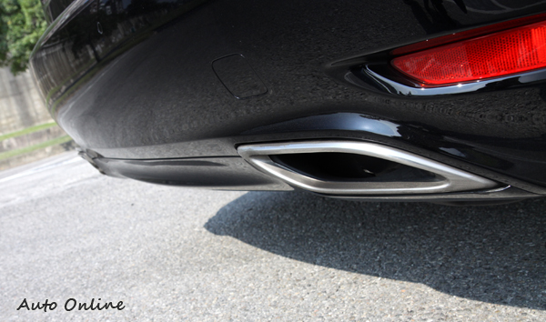 ▲左右單出鍍鉻尾飾管,V型八缸排氣聲浪特殊,內裝隔音做得太好,車內幾乎聽步道排氣聲浪。