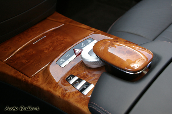 鞍座上的控制鍵安排也很簡單,只有座椅支撐控制、影音導航、音量調整和後座頭枕傾倒的控制鈕,其餘功能都已整合進COMAND系統內。至於M-BENZ車不可或缺的電話按鍵,在S-Class上早已化身為仿手機樣式,就安置在扶手前方。