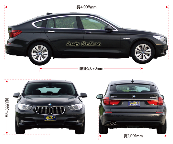命名為5系列Gran Turismo但跟5系列有很大的不同,從車身外型來看,沒有與5系列有太多的相同之處。而論車身大小,5系列Gran Turismo比5系列大上一截,5系列Gran Turismo軸距3,070mm發現,同等於7系列短軸版(F01)的軸距,很肯定5系列Gran Turismo有與7系列共通底盤。