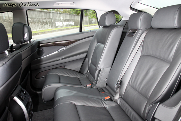 而5系列承用7系列的底盤,車內的空間相當充裕、寬敞,有比5系列還寬敞的座艙環境,而BMW的用心在車內設計看的出來,刻意在後行李廂與乘坐空間除了座椅椅背外,還設計隔板將廂與廂之間隔開,降低噪音互相穿繞,BMW注意到各個細節。5系列Gran Turismo雖然冠名為5系列,在車內豪華質感直逼7系列,像是在7系列車上才會出現的車門自動吸閉功能,出現在5系列Gran Turismo上,同為5系列的5系列Gran Turismo只有車名相仿,等級、質感都在5系列之上。