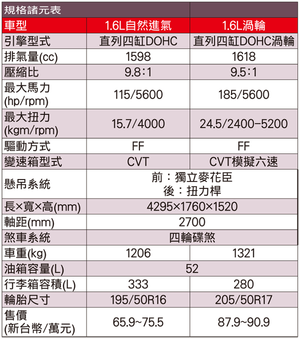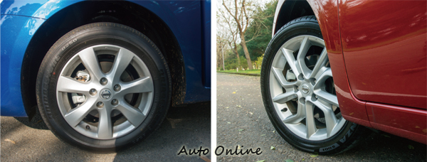 ▲自然進氣車型為16吋、渦輪版則配17吋鋁圈。