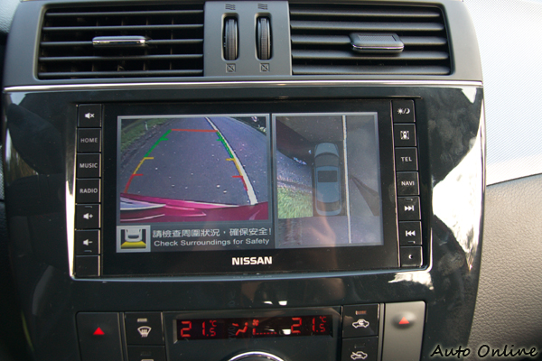 配合Super Media系統,裕隆日產也增加了360度環景偵測系統作為高規車型標配,可以擷取車身前後左右的影像,並以顯示前方、後方、右方與四周四種影像。讓駕駛者倒車或狹小空間內移車更為安全,對一般駕駛經驗不豐富的人來說多了些安心依靠。車廠還另外提供環景錄影的行車記錄器給高規車型來選配。