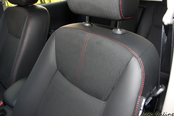 座椅部分駕駛座有六向調整功能,副手座為四向,座椅表面包覆材質部分1.6自然進氣款為全皮質,1.6L渦輪款則為半皮半布式樣,並且加入紅色縫線增添運動風。