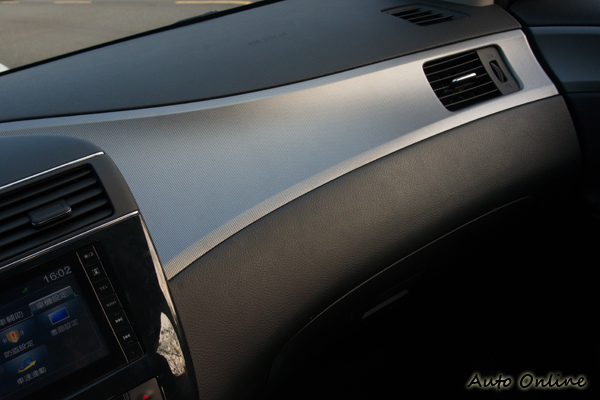 新的前方控台造型以方整的中控台為中心,透過波浪般的曲線向二側延伸,看起來整齊舒服。儀錶板上方採用三層材質處理,所以不像整塊塑料般硬梆梆,摸起來較為柔軟有厚度;飾板部分1.6L自然進氣款為髮絲紋式樣,1.6L渦輪車型則為類鈦銀式樣。