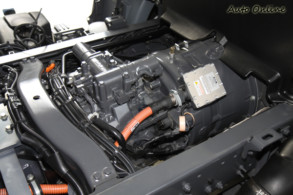 目前業界12噸左右的貨車排氣量通常在7.5L左右,主打環保省油的LF HYBRID便是採用小排量引擎外加Hybrid系統輔助的模式驅動車輛。原本的4500c.c柴油引擎可輸出160匹的馬力,外加驅動馬達所輔助的60匹馬力讓綜效馬力達220匹。比起7.5L的貨車這樣的馬力雖然略小了一些,但好處是燃料稅每年可以省下約6千多元,油耗也有近16%的節能。