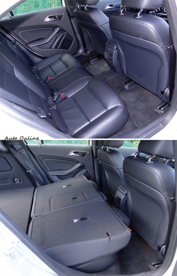 座艙人體工學設計![]() 兩種車型的內裝設計只有少數地方不一樣,標配都是皮椅,由於位階較低,全車系所用都是人造皮,其中A180為手動調整,A200 CDI則標配記憶電動座椅。人體工學也是本次試駕A-Class少數不滿意的地方,首先,正常體型的成人就會感覺座墊寬度不足,開車時大腿幾乎都是跨在座墊兩側隆起的部位。而由於前擋風玻璃上緣偏低,下緣又過高,將座位調到最低,才能勉強在路口停紅綠燈時看到燈號,也不容易掌握車頭位置,加上有粗厚的A柱,還有面積不大的後擋風玻璃,賓士是不是應該慎重考慮把盲點警告系統列入車系標配? ![]() ▲與一般掀背車一樣,後座椅背具有60/40分離的分離設計。![]() ▲後座不算很寬敞,但正常坐姿的腿部還是有充裕的空間。合理的用料質感手動座椅在賓士大概只有150萬以下的車才看得見,有些人或許會對德國車廠老愛用旋鈕來調整椅背角度的作法不太高興,不過即使對我們拍照時必須不斷調整角度,也沒感覺太大困擾,除了車床族,一般人應該也不會有事沒事大幅度動椅背。和拉柄設計比起來,行駛中想調整角度,拉柄可能不小心會讓椅背突然後傾,反而慢慢轉比較安心,況且A180的旋鈕位於椅墊側面,轉起來又輕鬆,不像有些車廠設計在椅背側邊,不是和B柱就是和中央扶手擠在一起,非得練過軟骨功才摸得到。![]() ▲入夜後的中控台呈現出華麗的科技感,相當顯眼。