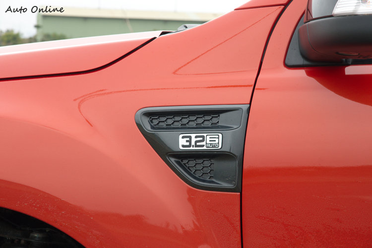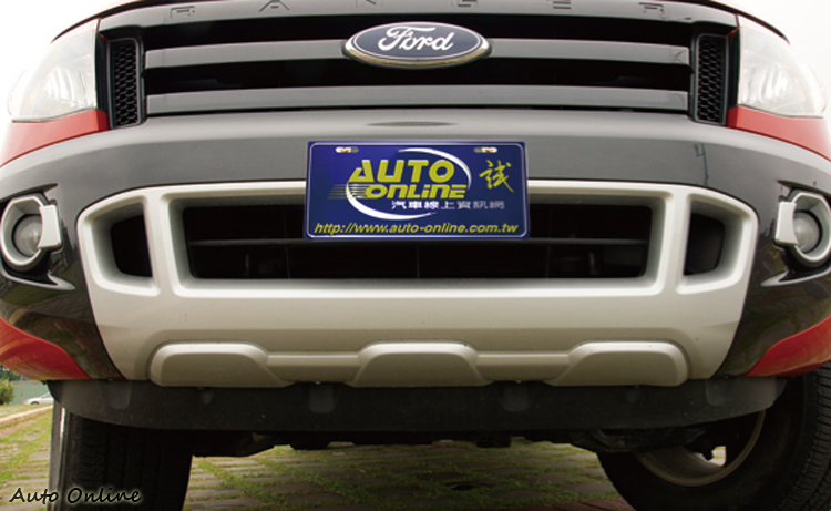 車頭部分大面積的黑色三橫條式Wildtrak水箱罩、保險桿與銀色的下護板就幾乎將視覺給佔滿。