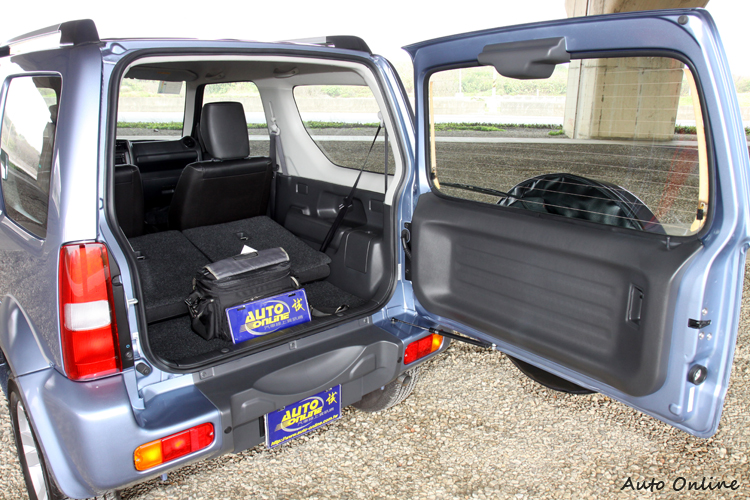 ![]() ▲後座要坐進成人有點勉強,拿來放置行李或者兒童乘用在適合不過。![]() ▲Jimny後座椅背放倒之後能爭取不少出遊時的行李廂容積。![]() ▲Jimny的尾門為左右開啟方式,需要的開啟面積較大但較為省力。