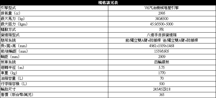 機械增壓結構複雜也較重,但從引擎發動的瞬間就開始做動,這也是為何許多人在形容機械增壓的輸出特性都會用上較為線性一詞。340匹的最大馬力與45.9Kgm的扭力峰值讓這台豪華中型豹有著不錯的運動性。