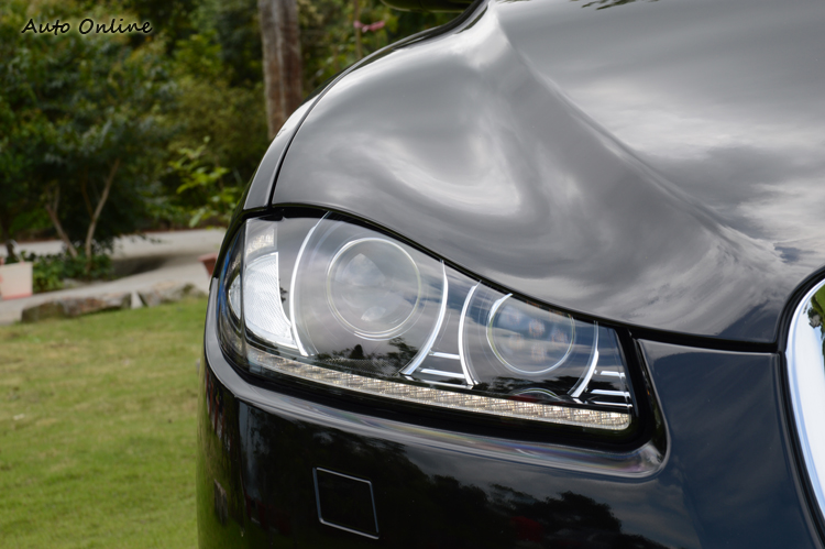 新引擎 新變速箱![]() ▲新的2.0升直四渦輪增壓引擎對應1660kg的出車重可謂輕鬆寫意。這次試駕的重點其實不在內外裝上的差異,如果對內外裝差異有興趣的讀者可以查閱我們在六月號XF 3.0 V6的試駕報導。而如果大家還有印象那麼在3.0 版的XF所使用的引擎是V6機械增壓。而到了2.0i所使用的動力來源則變成一顆直四的渦輪增壓引擎。 ![]() ▲透過渦輪增壓與八速變速箱的輔助,車輛起步感輕快,也沒明顯的渦輪遲滯問題。![]() ▲原廠標配235/55ZR17的輪胎,既然是獵豹,所以輪拱沾染一些泥巴也是很合理的。![]() ▲由於是入門版本,因此車輛並未配置主動式轉向頭燈。而LED日行燈的顆粒狀也較明顯。新世代的JAGUAR為了有更好的油耗與更輕盈的車身大量採用輕量化的技術,從引擎本體到車身結構都大幅導入鋁合金的材質。好處是重量輕引擎的負擔就小,因此油耗或是加速性或多或少都有幫助。壞處則是會修鋁合金鈑件的師傅不多,若不幸撞傷了,那麼修復的費用就相當可觀。 ![]() ▲柴油與汽油2.0i Luxury都是採用這款炫亮網狀鍍鉻水箱護罩。