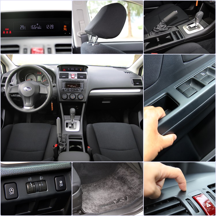 內裝方面,同樣是新世代家族成員的風格,但配備等級的提供方面也相當有限。內裝搭配以黑色為主,並且和大多數的SUBARU產品一樣,都有質感不夠理想的問題存在,其中塑膠感過重是Impreza的最大毛病,而這個缺失從20年前的第一代車型被大家抱怨到現在,從來沒有改善過,幾乎快成為它的傳統了。慶幸的是,另一個傳統也保留下來,那就是水準不錯的音響效果,比較可惜的是,這組2-DIN音響主機雖然支援MP3播放格式,但只有AUX-In輸入孔而不提供更方便的USB插槽,當然也不具備藍牙免持等功能,算是美中不足的地方。
