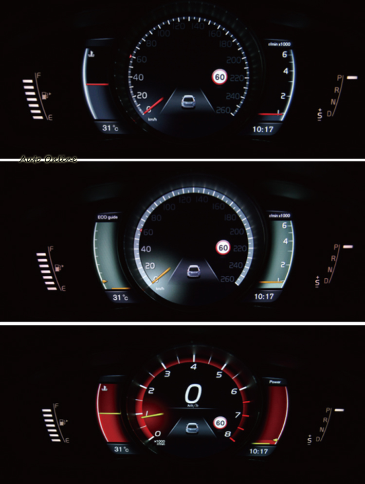 ▲與V40相同採用個人化數位儀表,共有Elegance(黑色)、Eco(綠色)以及Performance(紅色)三種模式可以切換。