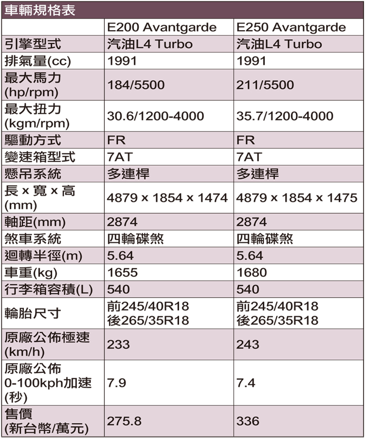 ▲2.0升渦輪引擎是E-Class主力動力,並提供兩種不同馬力輸出版本。
