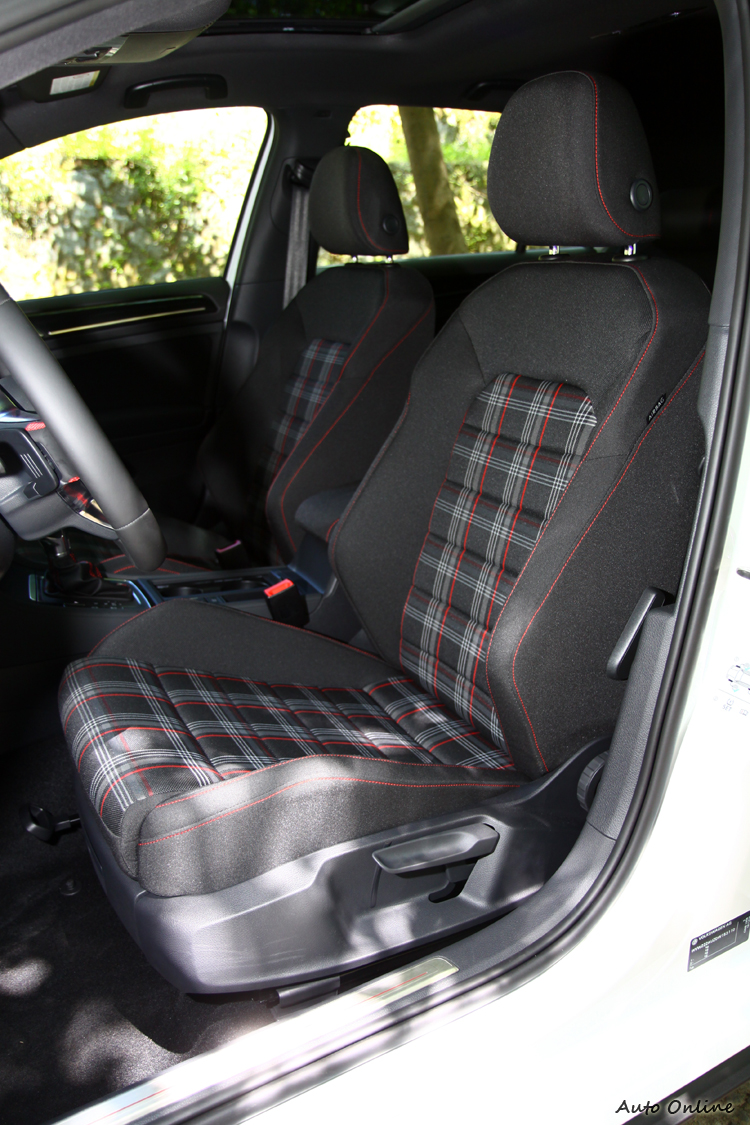 ![]() ▲內裝大致與標準版Golf相同,增加GTI專屬裝飾突顯兩者差異。![]() ▲GTI經典格紋跑車座椅加上紅色縫線,經典就是永不退流行。![]() ▲車門邊的飾條內崁入LED車內氣氛燈,白天非常不明顯。