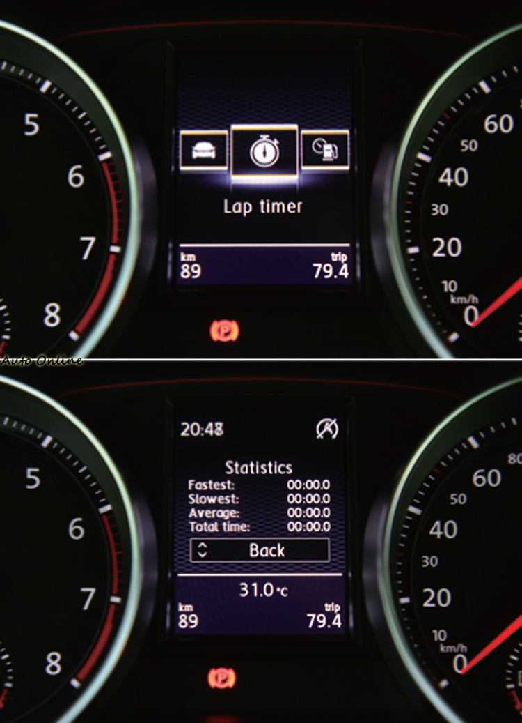 XDS介入 兩段式ESP 樂趣無法擋諸多數據都證明了GTI搭載第三代EA888引擎以及重新調校的底盤有更優異的性能,不過口說無憑,當然要實際試駕。Golf GTI真的是一部很好上手的小鋼砲,第七代導入許多新技術,再加上瘦身成功,加速表現非常輕快,透過換檔撥片,掌控各區域轉速的加速反應,跟六代相比,動態表現輕盈,加速度明顯變快。在山路上,微微轉動方向盤就能有不錯的車頭指向,車尾依舊保有穩定輪胎循跡,透過方向機的修正與XDS Plus進階版主動式防滑差速器(透過煞車增加穩定性與準確度),七代Golf GTI顯得靈活許多,尤其是在多彎的山路上,給駕駛多幾分信心繼續踩下油門。 ![]() ▲七代Golf GTI 的ESP電子輔助系統增加Sport模式,輕按一下解除ASR加速防滑系統,按住3秒進入Sport模式。![]() ▲數位單圈計時器,最多可記錄10圈的單圈成績,並顯示最佳單圈、最慢單圈、平均單圈。
