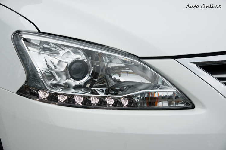 ▲晶鑽頭燈在下緣的LED燈眉點綴下目光更加有神。