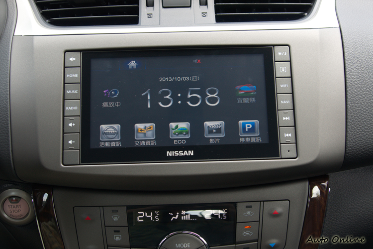 而在影音導航與通訊這方面,各大車廠都紛紛開發整合性的系統讓使用上更便利,新Sentra SV規豪華版以上也搭載了稱為Super Media的多媒體,將影片、音樂播放、導航系統、ECO節能輔助資訊、Wi-Fi/3G無線連網等功能整在七吋觸控螢幕上來操作。