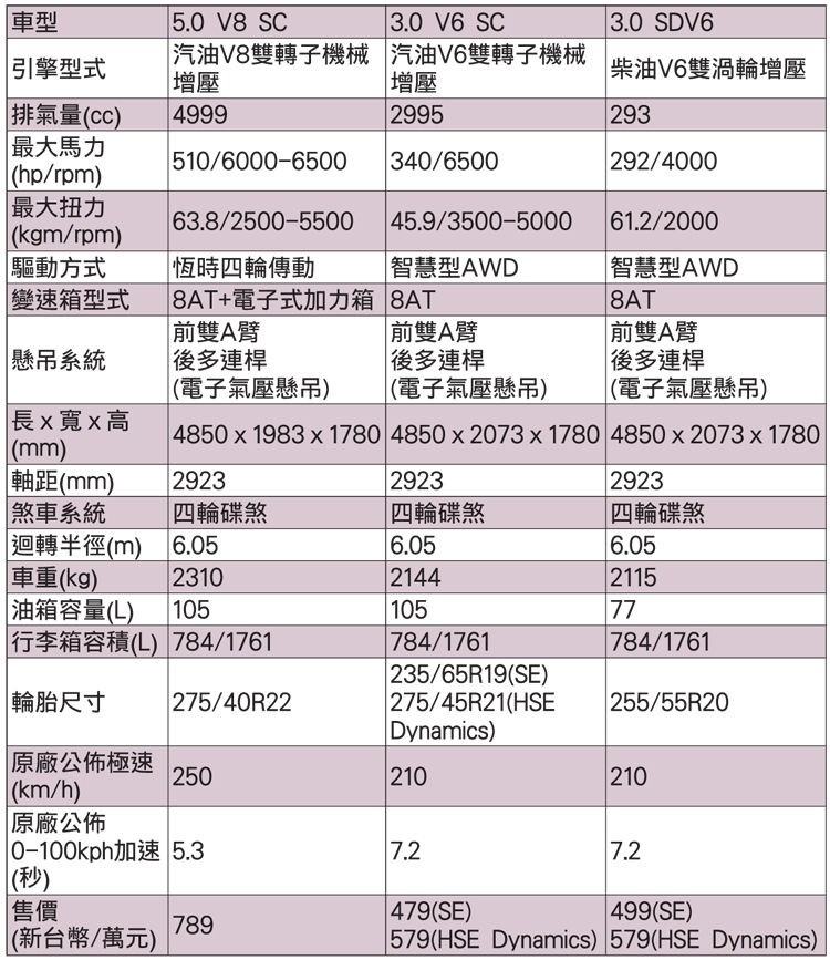 堅定的形象![]() 不同於一般運動版只加強動力表現,Range Rover Sport由裡到外都重新打造。 ![]() ▲尾燈和右側的Range Rover相比,Sport版採用橫置設計的造型。![]() ▲第二代車型加入更現代感的外觀元素,同時也提昇質感的精緻度。![]() ▲後保桿整合性能味濃厚的下氣壩、後擴散板以及座落兩側的雙排氣尾管。![]() ▲Range Rover家族三位成員風格迥異,其中Sport版取得最佳平衡點。![]() ▲包括BSM盲點偵測與CVS智慧型動態車輛偵測系統都是全車系的標準安全配備。![]() ▲全車A至D柱均延續家族特色,採高亮黑塗裝,在視覺上營造出如遊艇般的懸浮車頂設計。