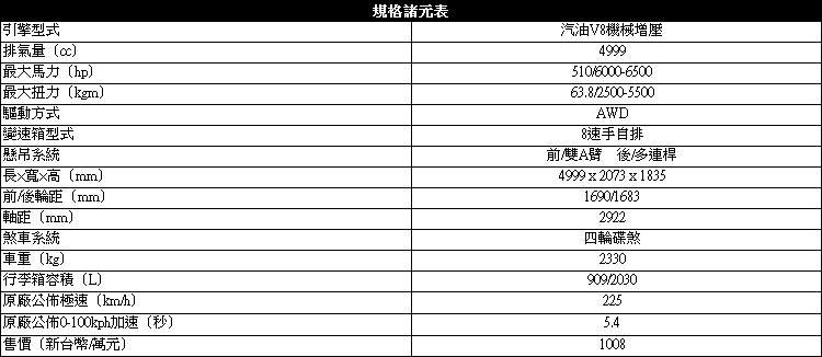 ![]() ▲這具5.0升機械增壓引擎已經普遍使用在JLR集團下各型車款,各方的評價相當高。關於5.0升雙轉子機械增壓的渾厚動力應該不需要太多形容,實際上510hp的帳面馬力在公路上真正派得上用場的機會很少,因為油門稍一踩深,轉瞬間車速就已經破百。綿密的8速自排運作品質極佳,全力加速時超過2噸重的車身高速衝刺起來,氣勢自是十分驚人。 ![]() ▲即使車重超過2公噸,起步加速卻絲毫不感遲滯,高速衝刺氣勢更是威猛。![]() ▲急彎時的車頭指向性雖然還是比不上轎車,但轉向反應稱得上很靈敏。