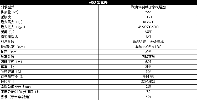 ![]() ▲在輕量化車體科技的運用下,引擎得以兼顧強大的性能以及低排污耗能。動力系統搭載3.0 V6雙轉子機械增壓汽油引擎,340hp最大馬力乍看與5.0 V8的510hp有段不小差距,但已足夠讓這部2.1公噸的車以7.2秒完成0-100km/h加速過程,性能表現絕對對得起它的Sport車名。我們更喜歡的是輕盈的轉向感,以及非常反應快又線性的油門反應,這使得它的車頭指向更容易控制,也讓連續彎中維持轉速時可以得心應手。在開上鬧區馬路後,敏捷的動力成了“脫困”的利器,輕輕補個油門就能甩開車陣,活潑的特性讓高重心的先天特性隱藏起來,倒是煞車效率似乎沒有當初賽道試駕時來得好,希望只是個案。 ![]() ▲即使在鬧區街頭,也能感受靈活操控與活潑動力調校帶來的好處。