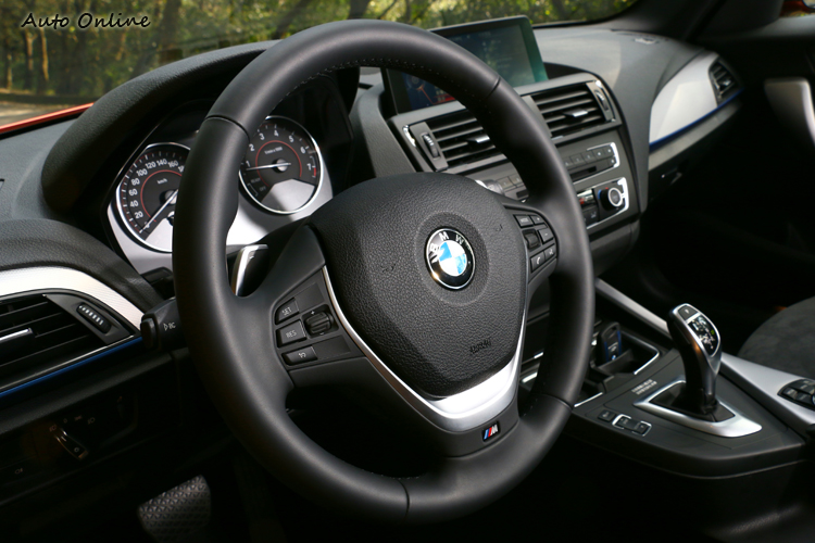 M135i有著M系列的血統,車內可以看到多處有M Power字樣銘牌,方向盤、車門檻、座椅、休息踏板在M Power點綴下更顯運動感。