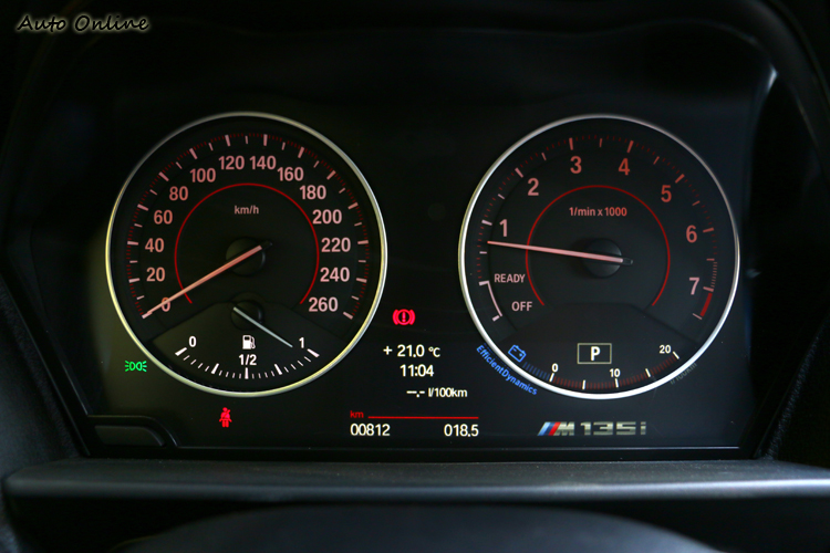 最後看看M135i的內裝陳設,其實與一般的一系列大同小異,不過M135i是頂規車型,所以車內的配備應有盡有,像是iDrive中文化控制介面,旋鈕有手寫輸入功能,BMW原廠中文化衛星導航,甚至儀表板內有5.7吋的延伸螢幕,顯示車輛資訊。