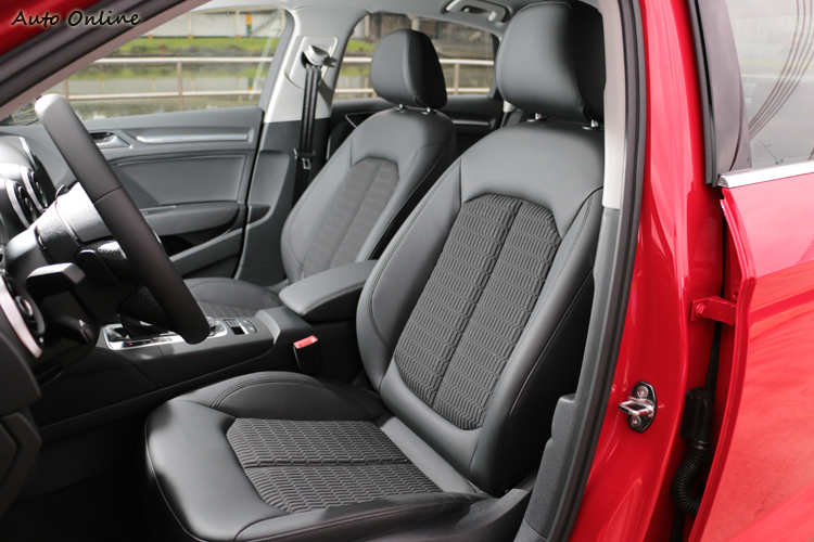 科技依舊 質感不俗![]() 一路上,除了從座椅向身體傳遞的細緻路面處理能力以外,雙手可及與視覺所見處皆延續品牌近年來廣受好評的科技路線,並以更勝雙B的質感處理,讓人得以身處在低調卻又滿分的高級座艙氛圍中,且不因大幅簡化的中控台總成,而有任何陽春或便宜的感受流露,相較於雙B對手的表現更勝一籌,更讓人享受此次的試車之旅。 ![]() ▲織布與透氣皮革混編而成的座椅,造型與功能性不俗。![]() ▲小車易見的頭部壓迫感與腿部空間不足在A3 Sedan都找不著,唯後椅背略嫌於挺直。![]() ▲後座有獨立出風口,但中間座位乘客腿部空間因而受到侷促。![]() ▲雖是入門車款,但Audi透過設計與不同素材營造出更優越的質感。