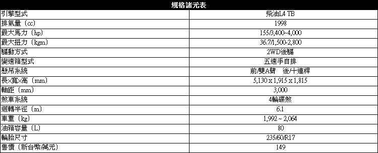 實際上路後我們首先要感受一下原本2.7升的柴油動力如今降為2.0升,要推動兩噸多的車重是否夠用。在平路上感受不大出來差異性,於是我們便把車輛駛向山區。我們發現雖然排量變小了,但由於扭力輸出從過去2.7升引擎的34.7kgm提升到現在的36.7kgm,輸出轉速也提前到1500轉。因此在山路行進間的動力相當飽滿夠用,不會有氣喘吁吁的感覺。