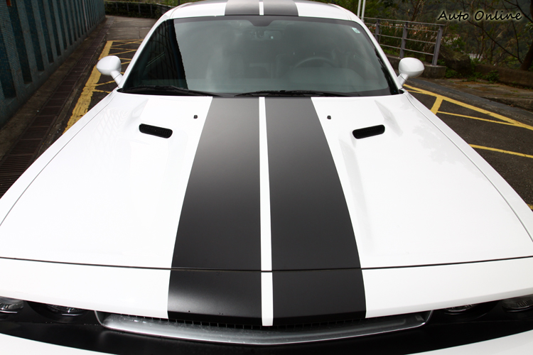 而這次試駕雖然是一般版本Challenger SXT,過鹹水前已選配從引擎蓋、車頂至行李廂的賽車飾條,車尾加裝小尾翼,引擎蓋散熱開孔,
