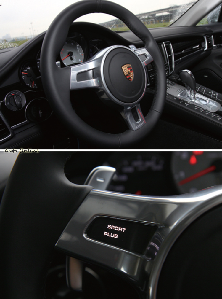 Panamera 4S也有渦輪喔!![]() ▲Panamera 4S Executive不再使用之前4.8升V8引擎,都改用3.0升V6雙渦輪增壓引擎。動力上Panamera 4S Executive不再使用之前4.8升V8引擎,之後的Panamera S或者Panamera 4S或者最新的Macan,都會使用這個3.0升V6雙渦輪增壓引擎。引擎缸數以及排氣量從原本8缸減為6缸,排氣量從4.8升降為3.0升,缸內直噴技術與雙渦輪增壓輔助下,馬力比起之前的400hp還多了20hp為420hp/6000rpm,扭力則比之前多2kgm有53.0kgm/1750rpm。 ![]() ▲七速PDK自手排變速箱,檔位1至6檔齒比較密,第7檔齒比較疏,主要是高速巡航使用。發動引擎瞬間,小改款Panamera 4S Executive聽不到之前V8引擎的特殊聲浪,但是在原廠調校下,排氣聲浪依舊雄厚、霸氣。排入D檔踩下油門出發,會發現儀表板檔位顯示在2檔,也就是一般模式下電腦會用2檔起步來減少頓挫與降低油耗。當你把行車模式切換到Sport或者Sport Plus時,電腦就會使用1檔起步取得更適合的齒比及更快的加速度。駕駛如果不想電腦干涉檔位,可以排入手動換檔模式,這時候駕駛有完全的自主性,就算吹到斷油電腦也不會介入升檔。 Panamera 4S Executive原廠標配PASM主動式懸吊調整系統,可根據路況與車主駕馭風格,調整車輛避震器阻尼。駕駛可透過中央鞍座獨立按鈕,選擇Normal一般、Sport運動或Sport Plus運動升級模式。感應器會紀錄車身在加速時、煞車時、急速轉彎時或行駛崎嶇路面時的動態,並分析側向加速、轉向角度、煞車壓力及引擎扭力等各種訊號。彙整後透過PASM控制電腦評估行車狀況,依照選取模式調整特定車輪的阻尼。