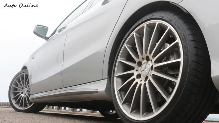 ![]() ▲比起一般高性能轎跑,外觀顯然霸氣不足,看起來和CLA250差不了多少。![]() ▲試駕車將輪圈升級為19吋,並搭配劃線打孔後煞車碟盤。