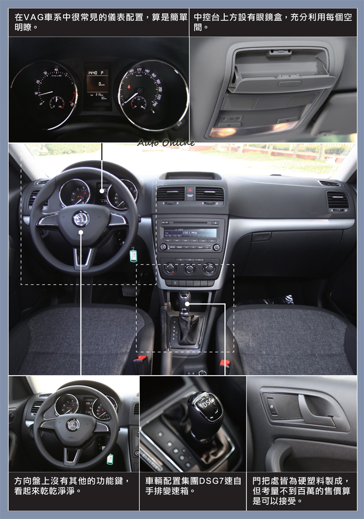 根據的我的不專業車主訪談,這些記者朋友買Yeti的理由是不外乎空間大、以及安全兩項主軸。當然我也問一般民眾很常見的問題,難道絨布椅內裝你可以接受?105匹的動力表現夠力嗎?