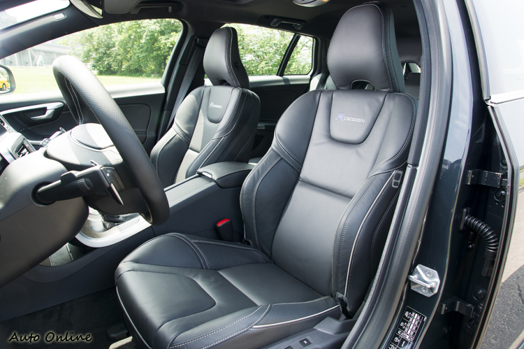 新配的跑車式真皮座椅提供了更好的觸感與包覆性,雙前座可做八向電動調整並附可調式腰靠。其他像藍色數位儀錶組、真皮跑車排檔桿頭、鋁合金防滑油門/煞車踏板與鎖附式跑車踏墊也都是R-Design車型所專有。