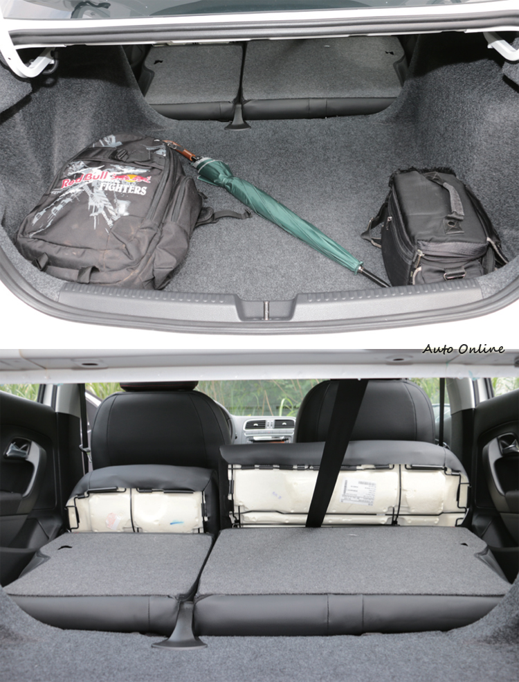 車室內裝![]() 前面提到Vento的車身比Polo大一號,實際上就連軸距也比Polo長82mm而達到2552mm!拿Golf來當對照組的話,這已經是中型車的水準了,車室空間當然比Polo寬敞多了。 ![]() ▲軸距拉長後,後座空間明顯比Polo更好,膝部空間甚至已經超越Golf。![]() ▲車系將超音波感應防盜裝置列為標配,可惜實際測試的聲音不算太響亮。![]() ▲座椅特別加上紅色縫線,且全車皆配置三點式安全帶和頭枕。![]() ▲即使是後門的門板置物格也能放進礦泉水,置物空間相當多。![]() ▲中央扶手雖然小巧,但也能摺疊後翻,內部還植絨處理。![]() ▲行李空間寬度因避震塔而寬度受限,椅背放下後會有段差,但尚稱平整。