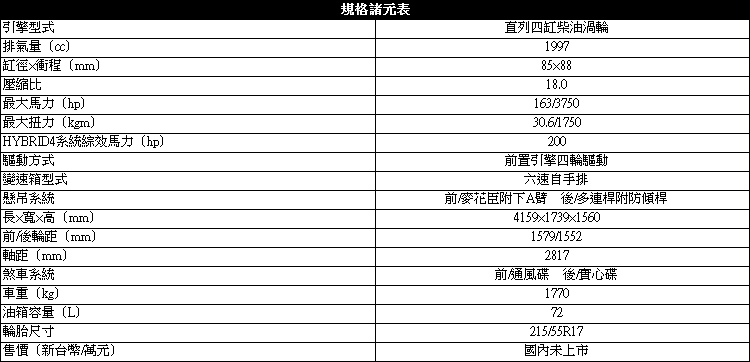 ▲Hybrid4系統在引擎部分是搭載163匹馬力的2.0 e-HDi引擎。