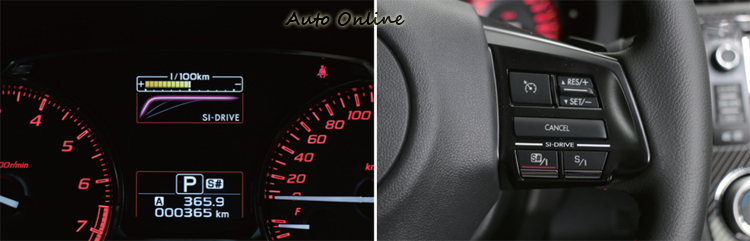 ▲SI-DRIVE動力控制系統切換在方向盤上,透過儀表板中間螢幕得知目前模式。