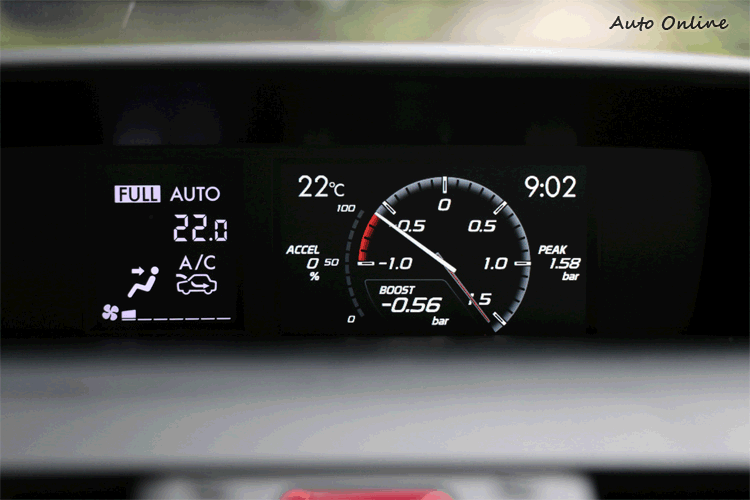 ▲中控台上方3.5吋螢幕可顯示渦輪增壓、油耗、AWD狀態等。