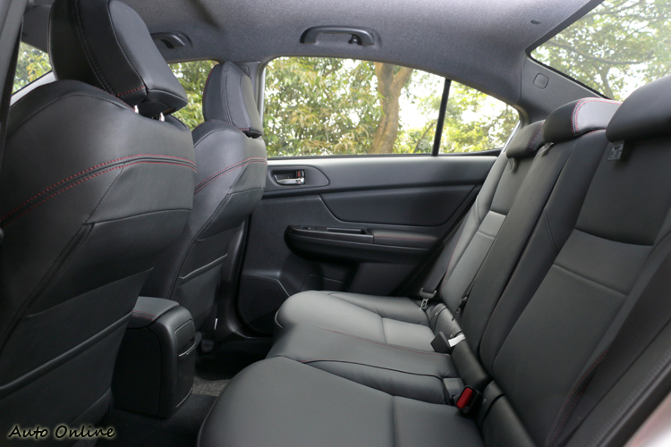 軸距提升25mm的WRX,後座乘坐空間有不錯表現,頭部與膝部稱不上寬敞但不會帶來壓迫感。