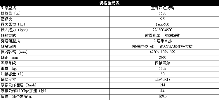 215/40的配胎則配上了渦輪葉片造型輪輻的18吋鋁圈。