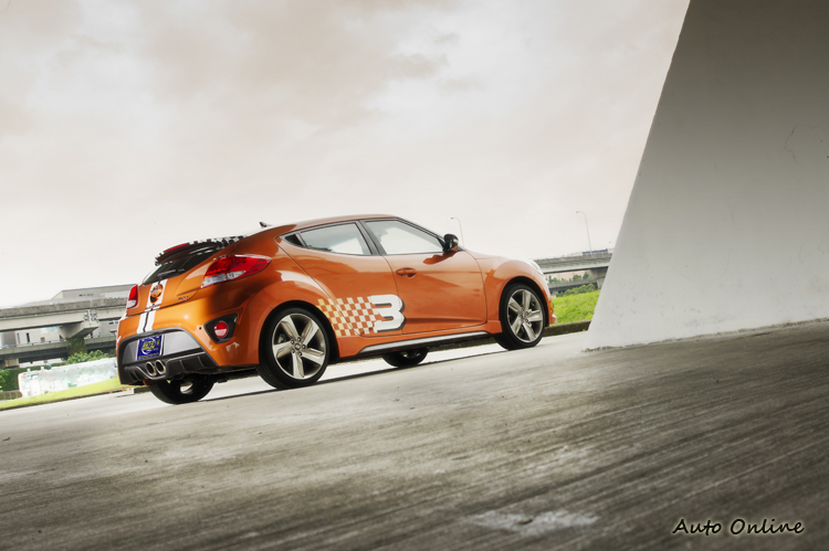 與一些進口性能雙門轎跑或所謂的鋼炮掀背相較,Veloster Turbo的性能表現、0-100km/h加速8.4秒成績其實並不突出,加速力道的兇猛氣勢也還沒到位,車尾下方的中出雙圓尾管口徑雖大但排氣聲浪跟一般掀背車沒啥不同。這幾個點以其價位來說是可以理解。更大的先天問題則在於它是前驅設定,非這類車型比較適合的後驅或四驅設定,拿價位相當接近的對手TOYOTA 86來說光在駕駛樂趣上就會令Veloster Turbo陷入苦戰。