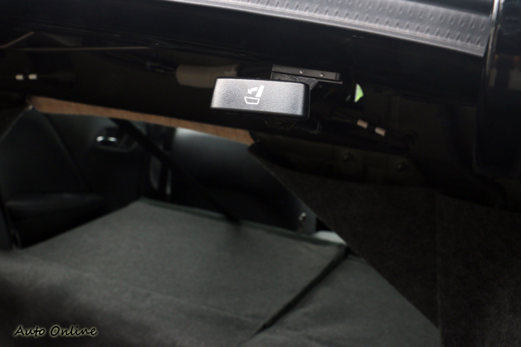 ▲透過後行李箱附設的拉柄即可放倒後座椅背增加空間。