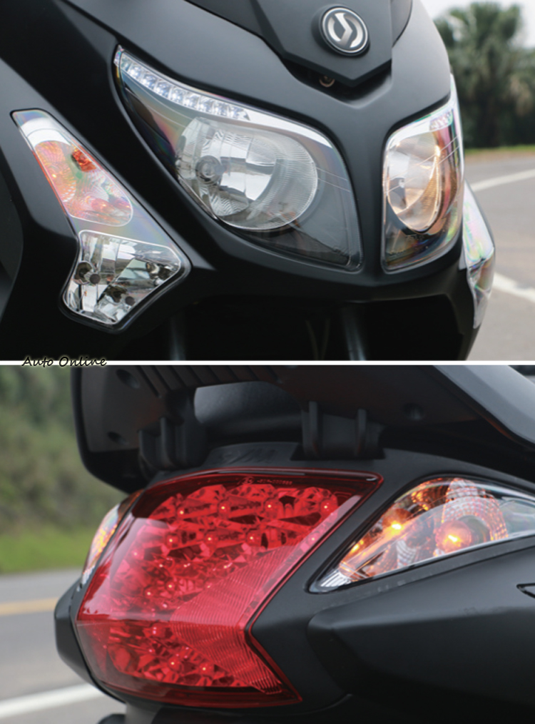 ![]() ▲雙環式藍光液晶儀錶基本資訊一目了然,仔細看時速錶內圈還是mph制喔。此外像是風鏡、後座腰靠、轎車式後視鏡在RV 270上是樣樣不缺,也都保有相當程度的實用性。因此我們說SYM對RV 270在配備上其實給的並不小氣。 ![]() ▲頭燈除了有招牌的LED燈沒設計之外,固定式霧燈與大氣的尾燈照型讓車輛流露出濃厚的歐洲風情。
